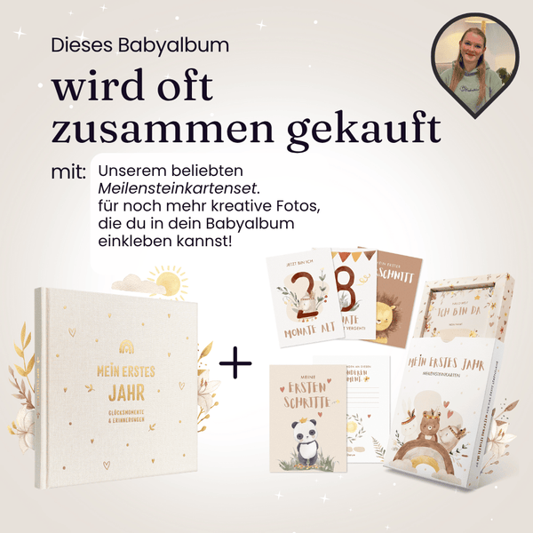 💛 Tipp: Ergänze dein Album mit unseren 🔗Meilensteinkarten, unserem 🔗Abdruckset oder wähle direkt das 🔗Sparbundle, um alle Erinnerungen perfekt festzuhalten.