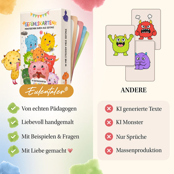 Schenke deinem Kind jeden Tag mehr Empathie, Selbstvertrauen und soziale Stärke – mit unseren liebevoll gestalteten Gefühlskarten. Sie wurden von erfahrenen Pädagogen entwickelt und sind ideal für Kinder im Kindergarten- und Schulalter.